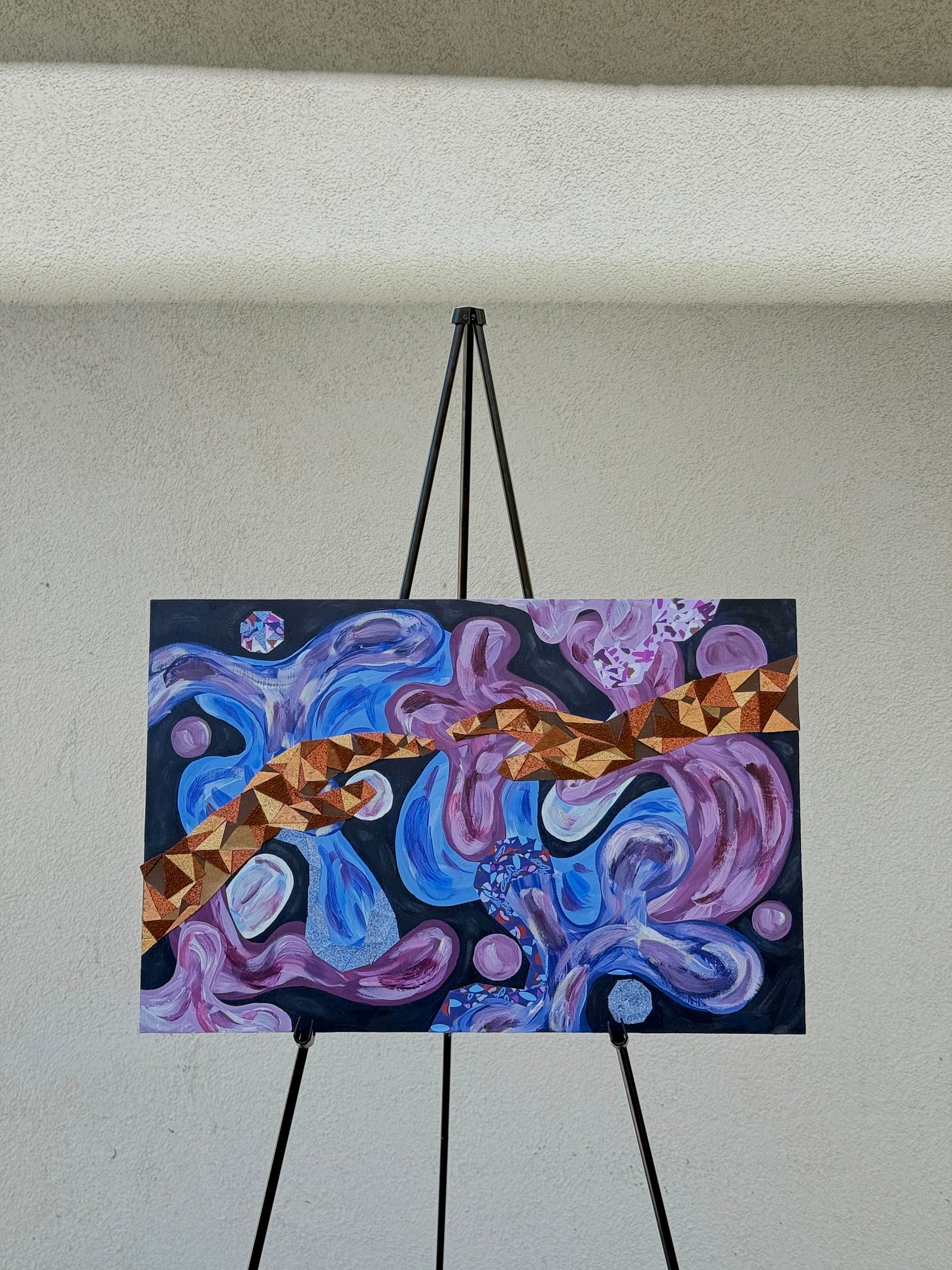 with this i introduce my burgeoning artistic voice, which i call a theory of visual poetics—where color, harmony, form, material, dissonance, and texture reflect words, and each piece becomes a unique poem, exploring humanity through emotion, lived experience, and inquiry. the tools of this visual poetics have always been with me: from my dad’s recitations of Langston Hughes to my interest in spoken word poetry, to my fascination with curation, and rediscovering the paintbrush during the pandemic. it’s clear that there is nothing new in this life—only the discovery of tools to better understand the world. i’m thankful i unearthed my visual poetics.